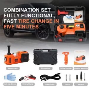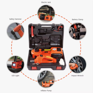 - 3-in-1 Multifunction Design: Integrates electric hydraulic jack, inflatable pump and bright LED light for all-in-one convenience.